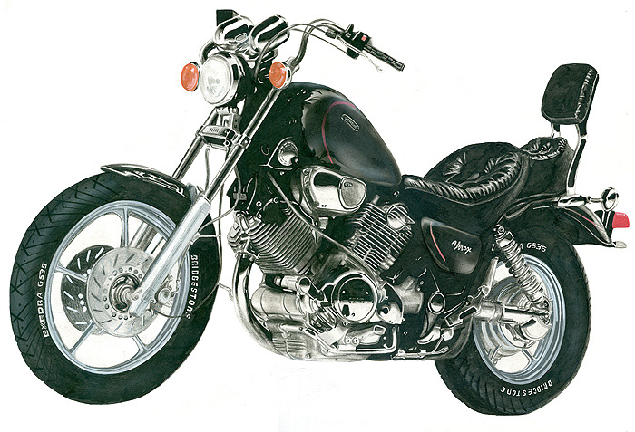 Yamaha Virago - Airbrush, ink, colour pencils and graphite on paper.